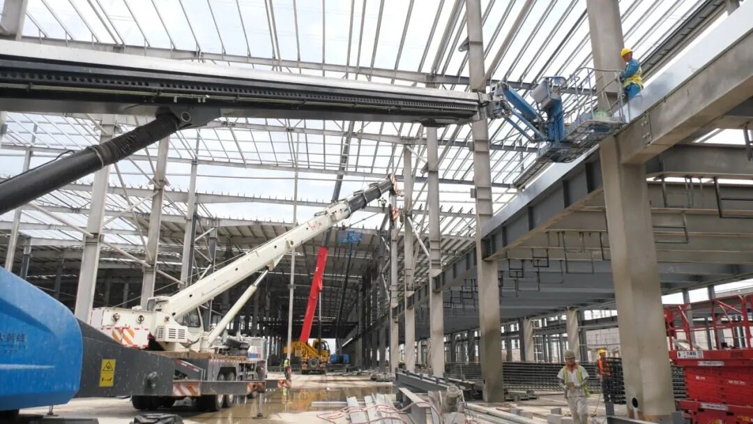 昊徽科技产业园项目一期占地 379.33 亩,建筑面积超 15 万平米,由湖北昊徽新能源科技有限公司斥资 19.2 亿元合资建设。为实现 10 月底联动调试的目标,建设团队克服施工作业面广、工序复杂、交叉作业多、高空作业频繁等挑战,提前对施工工序进行科学规划,调配经验丰富的施工班组,同时大量运用机械设备辅助作业,全力保障工期进度。